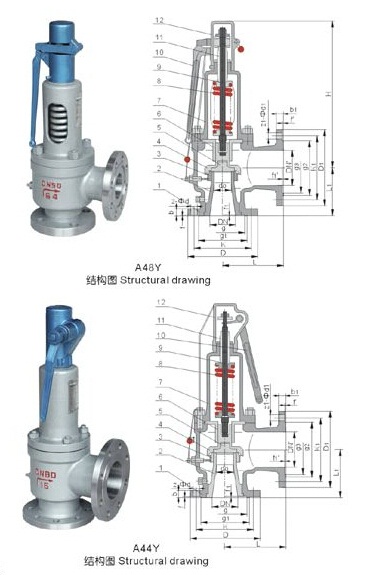 A48Y帶扳手彈簧全啟式安全閥適用于工作溫度≤350℃的蒸汽、空氣等介質(zhì)的設(shè)備和管路上。