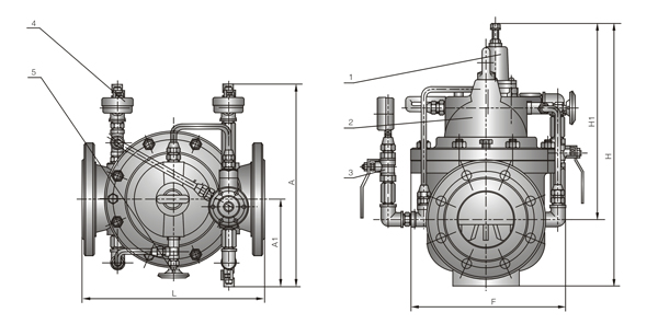 1、導(dǎo)閥2、主閥3、球閥4、壓力表5、針閥