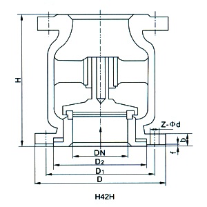 H42H、H42W立式止回閥正常處于關(guān)閉狀態(tài),由于管線中進(jìn)口端介質(zhì)的壓力作用,而克服彈簧阻力使閥門(mén)開(kāi)啟。當(dāng)進(jìn)口端介質(zhì)壓力低于出口端時(shí),彈簧將閥芯推向閥座而使閥門(mén)關(guān)閉,阻止介質(zhì)逆流,故起止回作用。