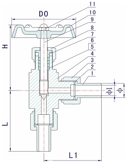 3. 結(jié)構(gòu)特征:錐面密封,活動(dòng)閥瓣,直角式